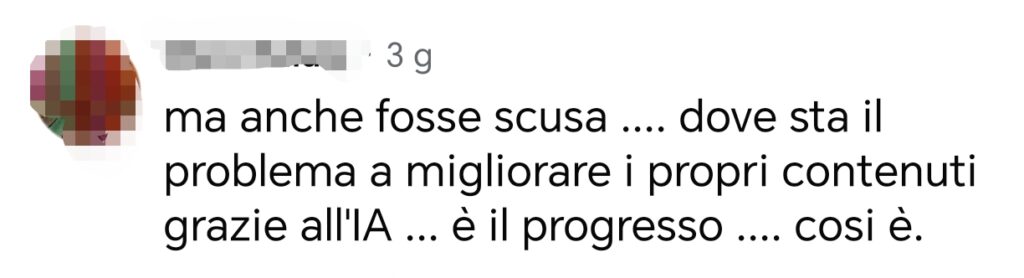 Nel post in questione viene rinfacciato a questa persona l’utilizzo di ChatGPT per scrivere recensioni. Ho letto di sfuggita, tempo addietro, qualcuna di queste “recensioni” e posso tranquillizzare tutti quanti: questa persona non ha scritto recensioni con l’utilizzo di intelligenza artificiale. Nel modo più assoluto.